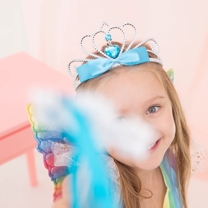 Diadem z niebieskimi klejnotami i kokardą srebrny