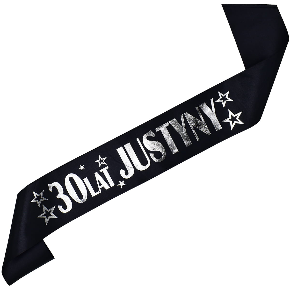 Czarna szarfa ze srebrnym nadrukiem 30-tka z imieniem solenizantki