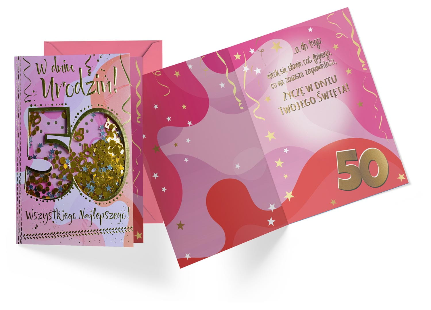 Karnet Konfetti Urodziny 50 (cyfry, damskie)