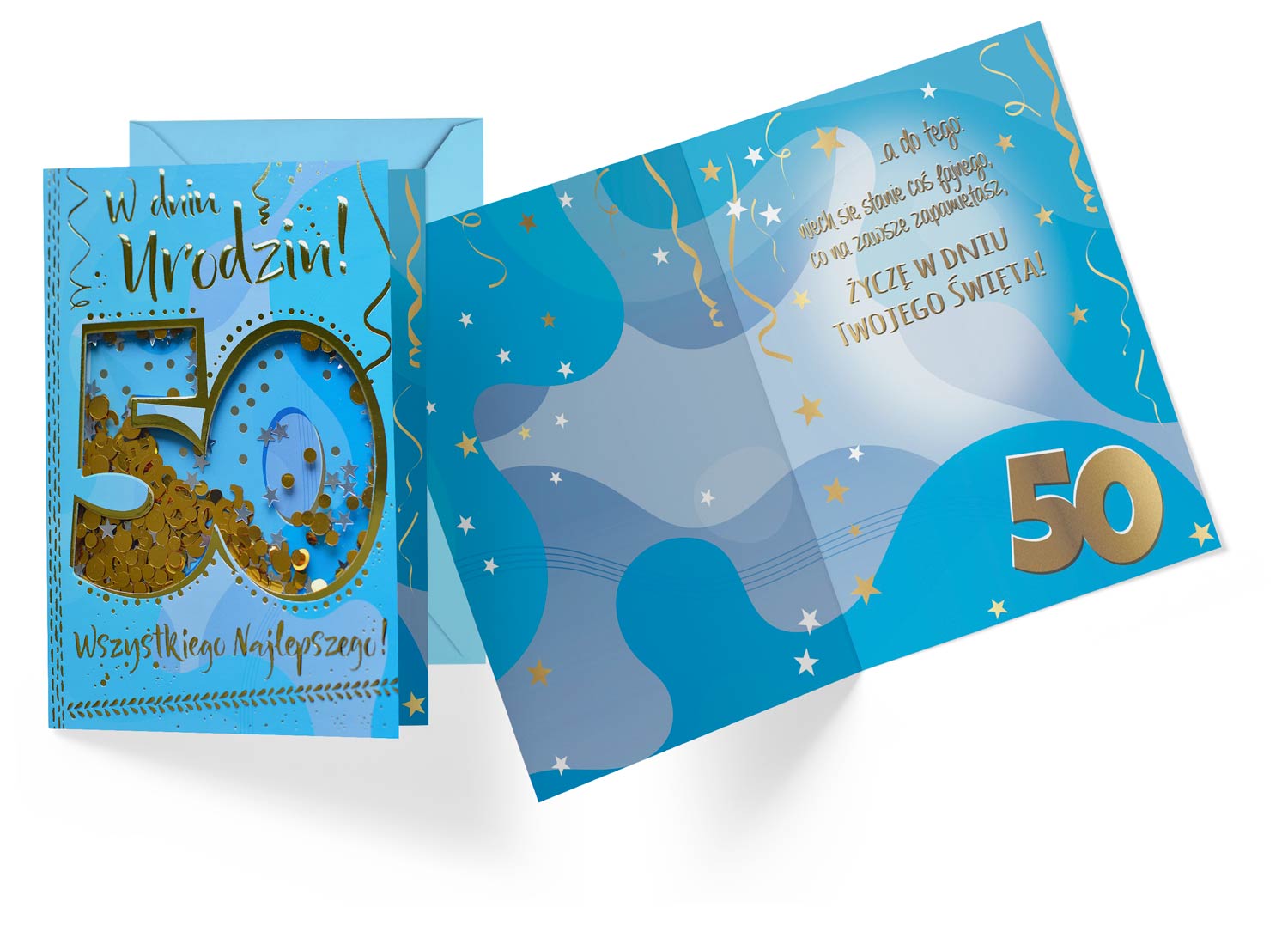 Karnet Konfetti Urodziny 50 (cyfry, męskie)
