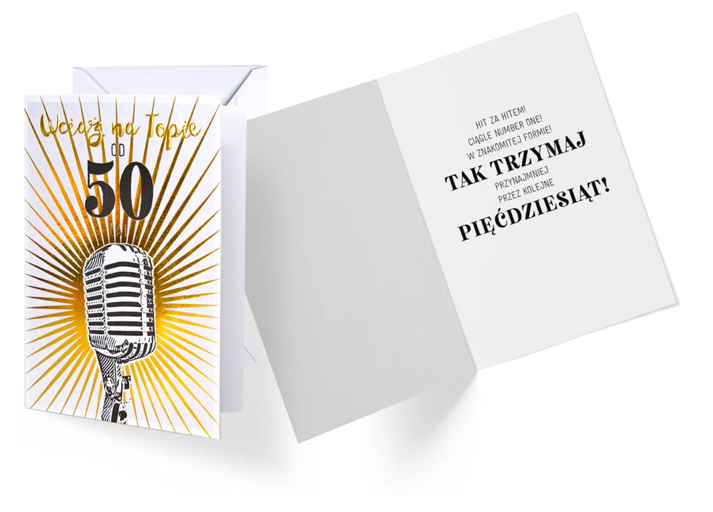 Karnet Urodziny 50 (cyfry, mikrofon)