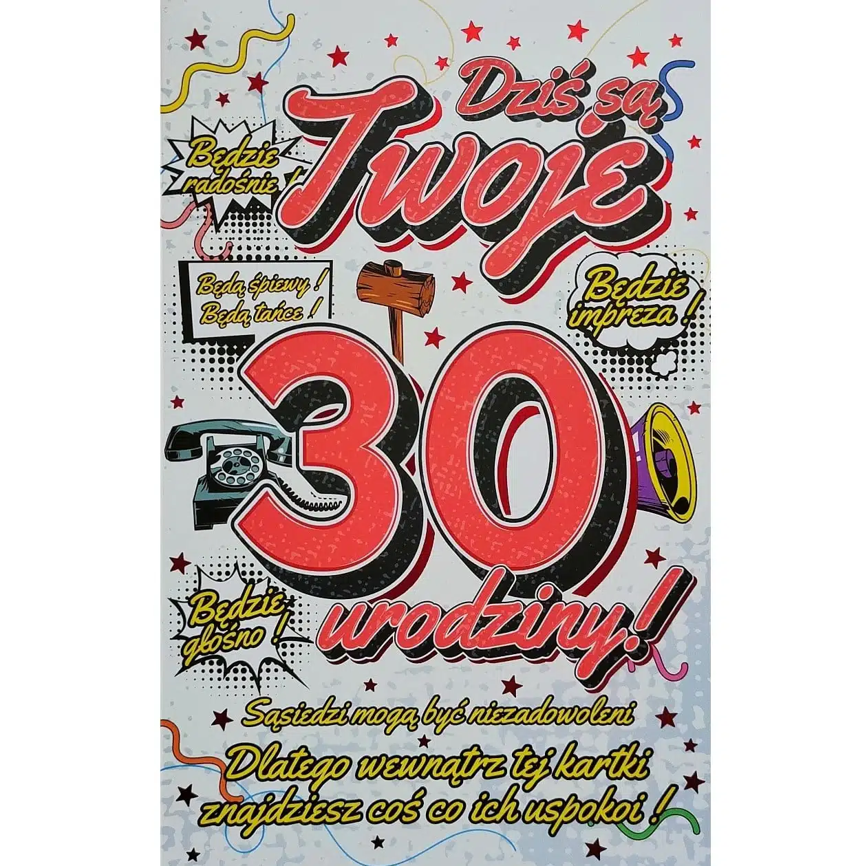 Kartka urodzinowa – 30 urodziny, zawieszka, czerwona