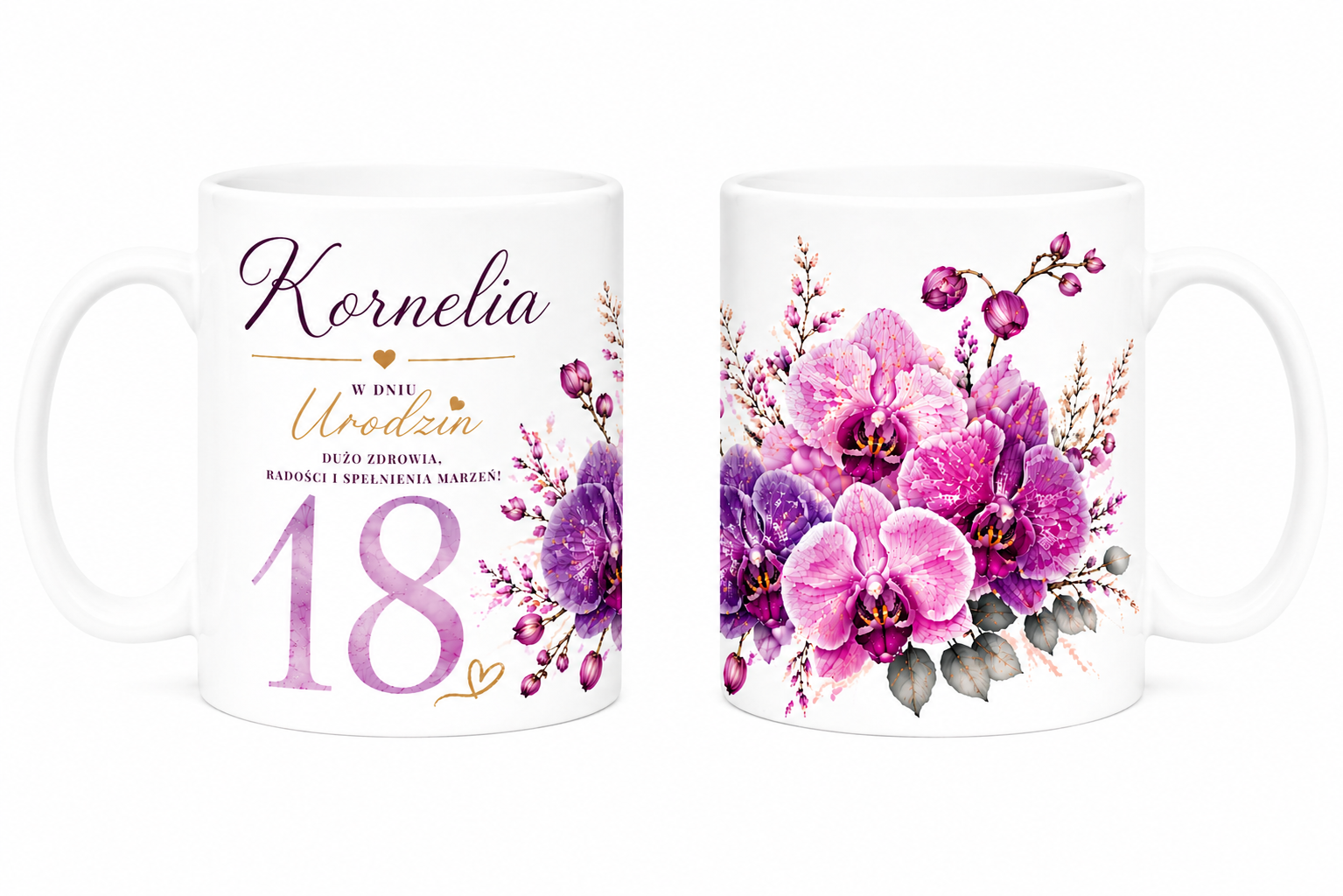 Kubek na 18 urodziny z imieniem - storczyki