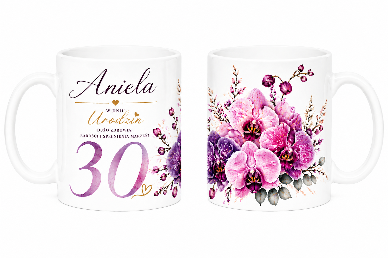 Kubek na 30 urodziny z imieniem - storczyki, 330ml