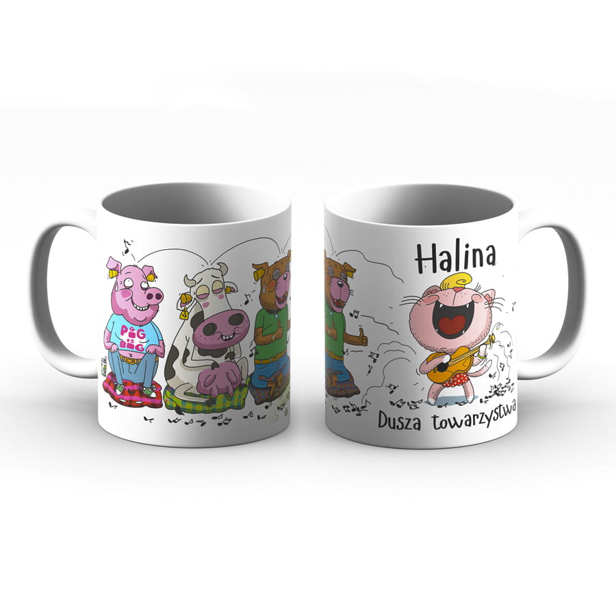Kubek ze śmiesznymi kotami oraz imieniem. Na kubku znajdują się zwariowane koty w różnych sytuacjach. Bardzo fajny gadżet, prezent dla osoby o wskazanym imieniu.
