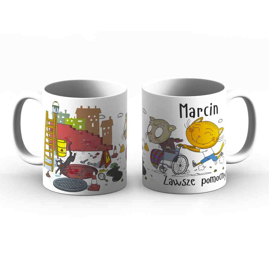 Kubek z imieniem - Marcin zawsze pomocny