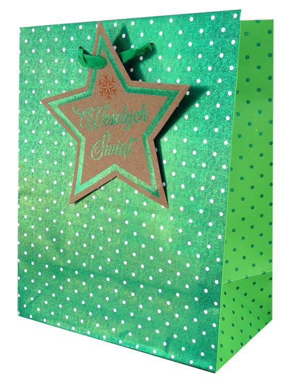 Torebka prezentowa zielona - kropki L